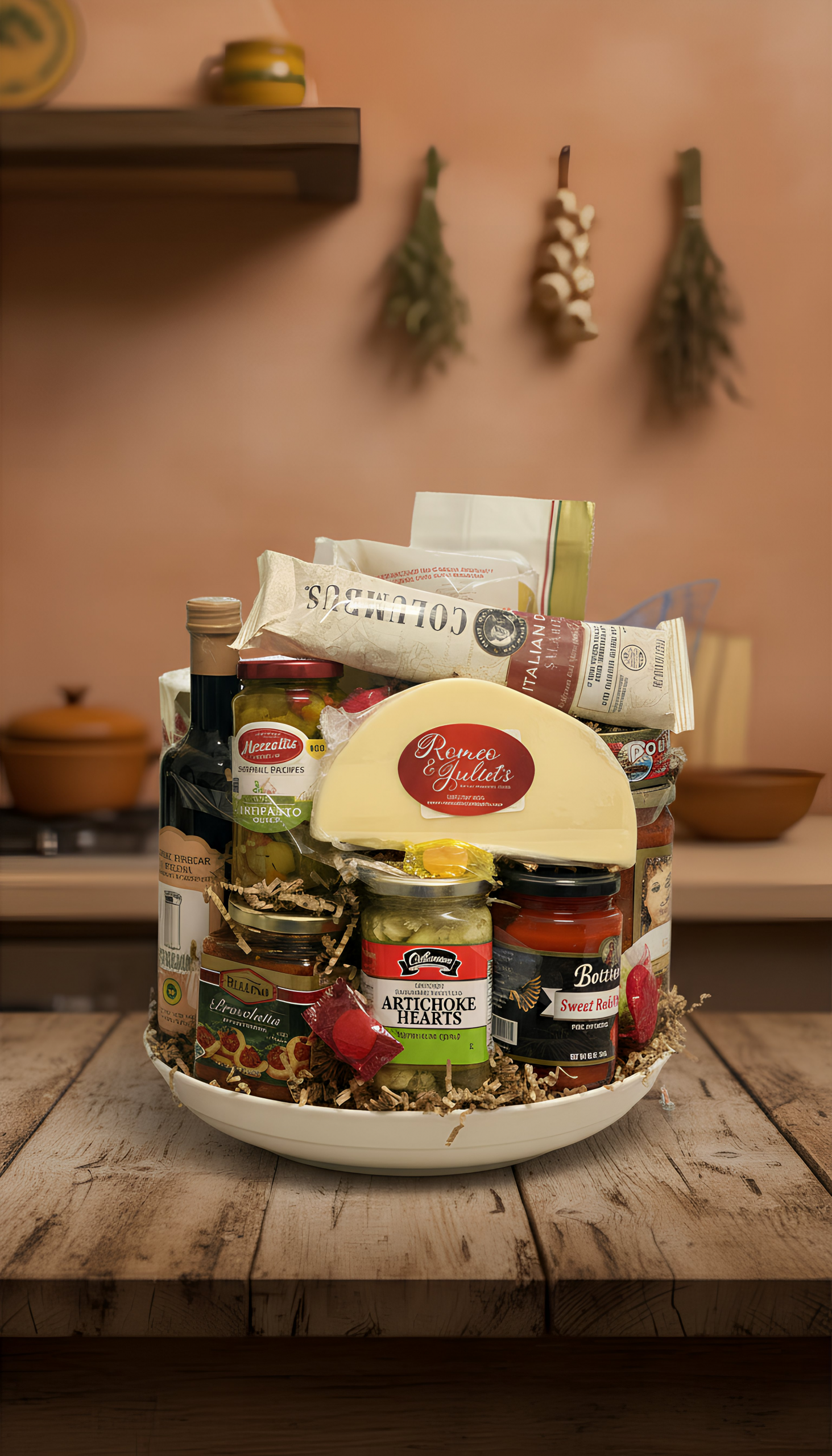 This basket includes a selection of danish, croissants, and bagels, paired with butter, cream cheese, and assorted jam, along with fresh grapes for a light, refreshing touch. Thoughtfully presented and ready to serve, it’s an easy and elegant way to start the day.